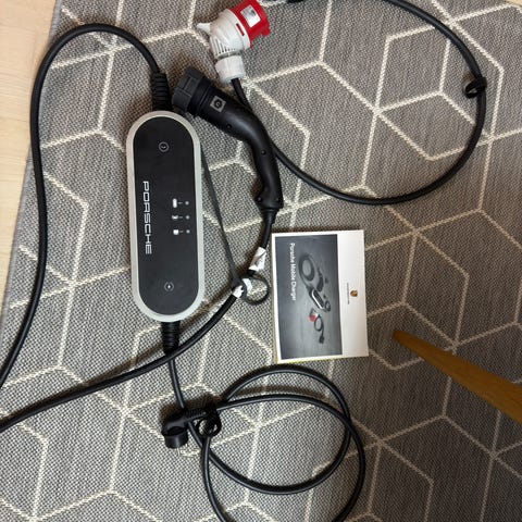Lader, Porsche, original Porsche Mobile Charger Connect. Kan bruges med alle elbiler og kan lade med op til 22kW. Laderen kan tilsluttes både krafttilslutning (enten via stik eller direkte tilslutning) og via 230v (enten via stik eller direkte tilslutning) og kan således bruges som "mormorlader" også.
