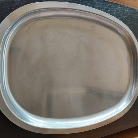 Rustfrit stål, Rustfrit stål, Stort Fad Med Hjort 26,5 cm, Stort rundt fad med motiv af en hjort i rustfri stål.