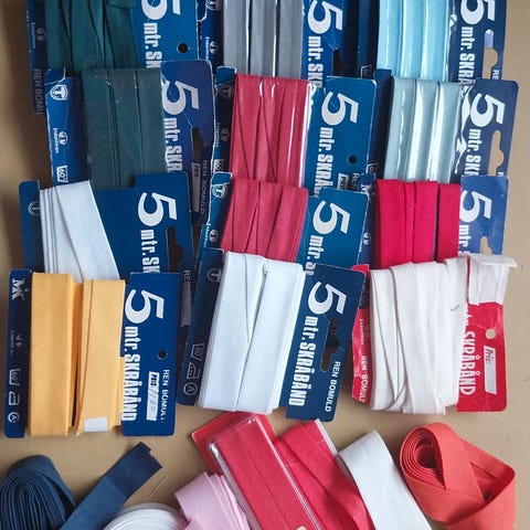 Skråbånd er velegnede til f.eks. pæn afslutning af kantning på syprojekter eller til påsyning som dekoration oven på andet stof.
