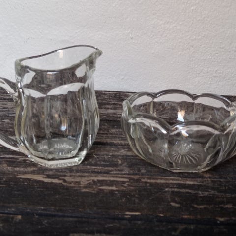 Glas, Gammel Flødekande Med Vildt Motiver, Kastrup, Fine små flødekander med vildt motiver i glas, sandsynligvis fra Kastrup Glasværk.