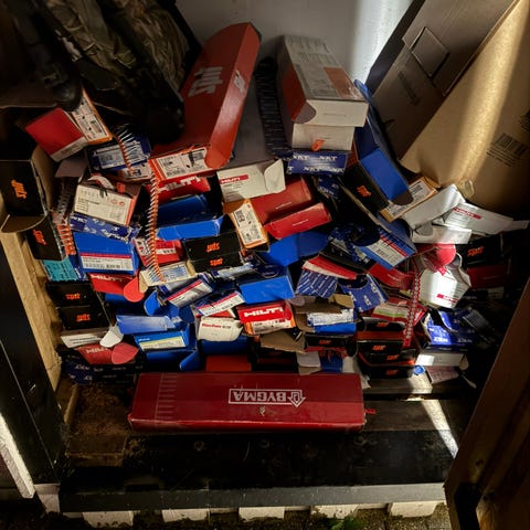 Første billede, er de 3 nederste uåbnet og i alt (på begge billeder) er der omkring 5-7 gips skrue pakker