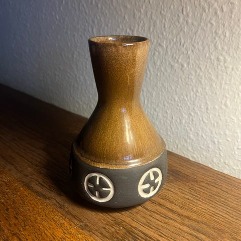 Der er et stykke, nederst på vasen, der er uglaseret, her er ternet mønster.