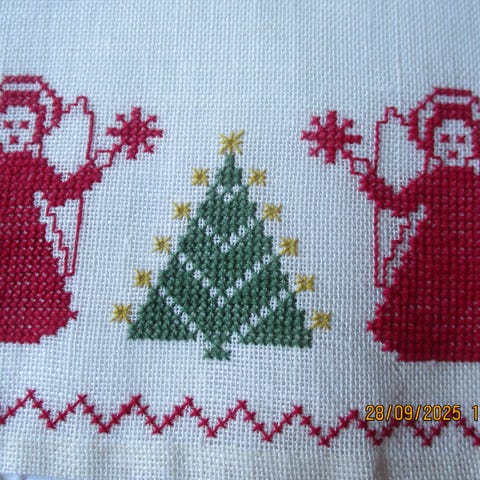 Jantelovens 10 Bud, Fint Broderet Jantelov med de 10 Bud i proffesionel indramning fra Glarmesteren. Mål L.45 cm H. 30 cm.
