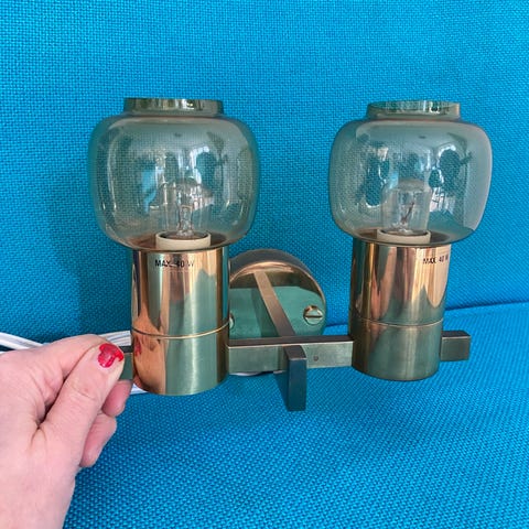 Væglampe, Hans-Agne Jakobsson, Smuk og meget sjælden væglampe designet i 1960erne af svenske Hans-Agne Jakobsson sælges. Lampen er udført i messing med hvidt opalglas. Lampen er som ny og har aldrig været monteret. Mere om lampen kan læses på linket: https://www.1stdibs.com/furniture/lighting/sconces-wall-lights/hans-agne-jakobsson-wall-light-brass-opaline-glass/id-f_33074152/