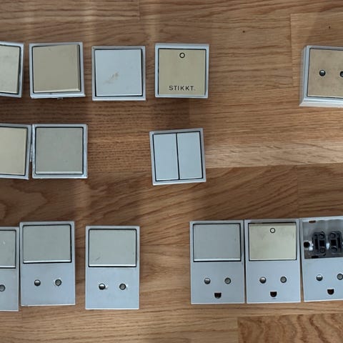 Vi har 1 stk. brugt retro LK udendørs plantangent 1 pol afbryder i grå med rød glimpære.