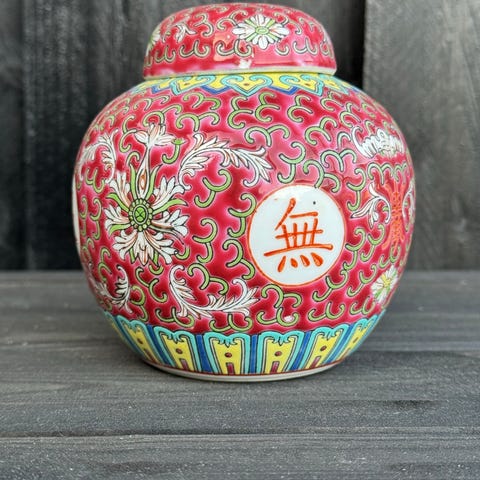 Kinesisk krukke med låg, Made in China, Flot stor ældre kinesisk krukke med låg i fin stand!