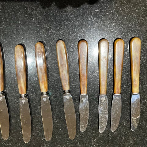Bestik, Smørreknive, Remmington, 6 stk meget velholdte knive remmington