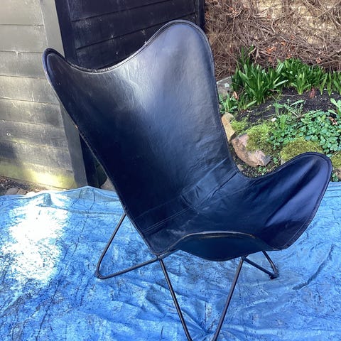 Hvilestol, læder, Flagermus stol, Flagermus stol med læder sælges da den desværre ikke rigtig bliver brugt.