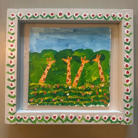 Akrylmaleri, Ib Meyer , motiv: Dyr, stil: Andet, b: 30 h: 20, Naivistiske kunster Ib Meyer Har lavet en række dyrebilleder med egne malede rammer