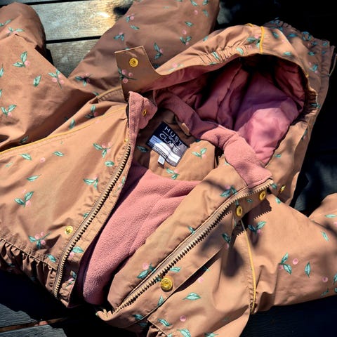 Der er ikke beskrevet vandsøjletryk m.m. Denne flyverdragt har fokus på bæredygtig fremstilling.
