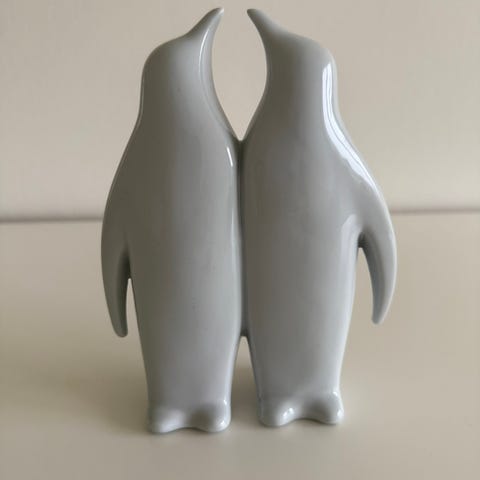 Pingvin Figur 4205, Bing og Grøndahl, Flot figur af et par pingviner, designet af Agnete Jørgensen for Bing og Grøndahl.