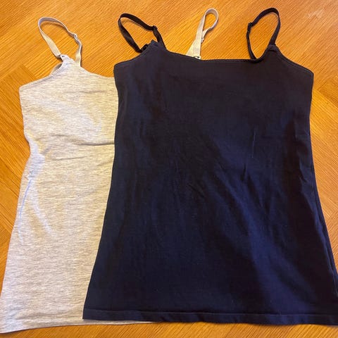 Ammetoppe, H&M, str. 38, Sort og grå, Bomuld, Næsten som ny, Ammetoppe i blød bomuldsjersey med indbygget, blød top og funktionel lukning, som gør det nemmere at amme. Den indbyggede top har elastikkant forneden. Smalle, justerbare skulderstropper.