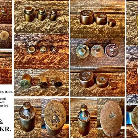 Messing, stort vægtlod og krus
