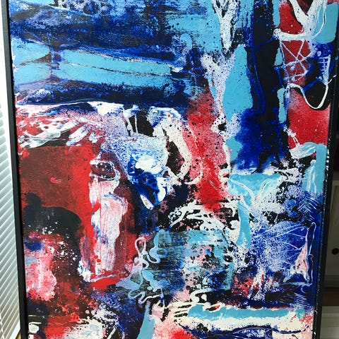 Lastbil i bevægelseFiks færdig5.000 kr.Akrylmaleri, Anders Nyborg, motiv: AbstraktTranbjerg JFøj til favoritter.