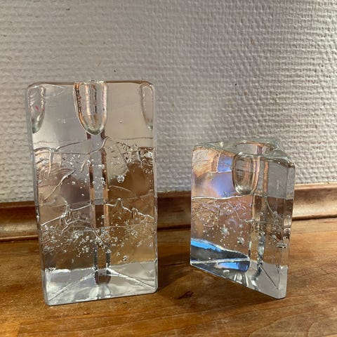 Glas, Lysestager på stilk med krave, Iittala, Finsk glas, Smukke lysestager i klar glas.