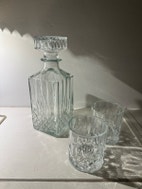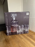 Glas, Whiskyglas, Whiskysæt sælges da jeg har 2, og den ene er fået i gave. Indeholder 4 glas og 1 kande. De er aldrig blevet brugt, og står som splinternye.