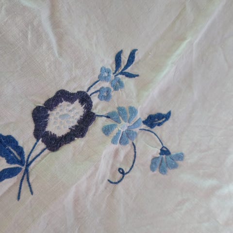 Dug, Broderet dug med blomster, Lækker broderet dug med fineste orange og grønne blomster.