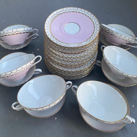Porcelæn, Bouillon kopper, Retro håndmalet