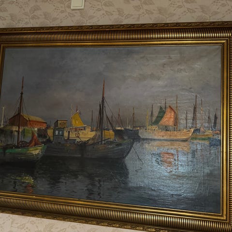 Oliemaleri, Utrolig flot, antik maleri med robust guldramme . Den er absolut uden skader eller defekter . B 101cm, H 78cm. Se også mine andre annoncer med malerier.
