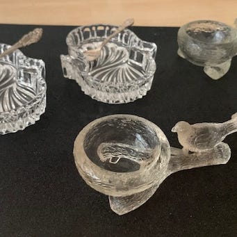 To små saltskåle i keramik / porcelæn - den ene med træske