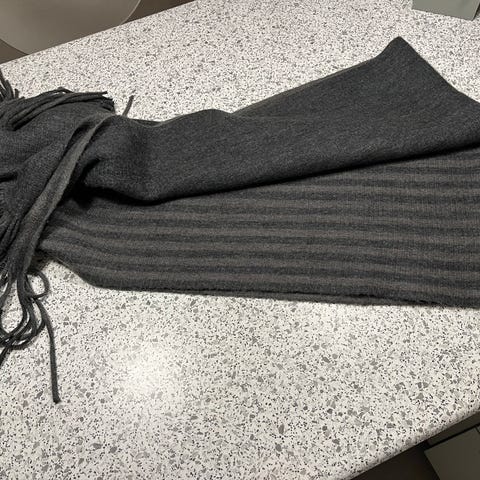 Fintvævet herre tørklæde med paisly mønster og mørk flaske grøn kanter med fryns. Har markeret det som næsten ny, men irker helt ubrugt.
