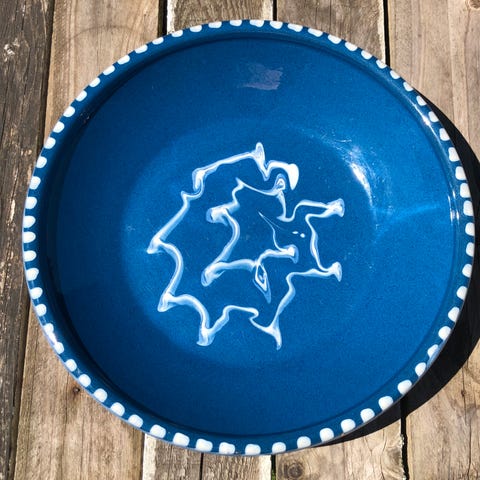 Lågfad, terrine, blå glasur med hvide nister