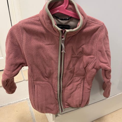 Jakke, jakke med tyndt foer, ver de terre, str. 92, Kun lidt brugt fin pigejakke med aftagelig hætte sælges. jakken lukkes med skjult lynlås og er med et læg på ryggen som giver jakken en fin A form og god bevægelse. Farven er sart rosa.