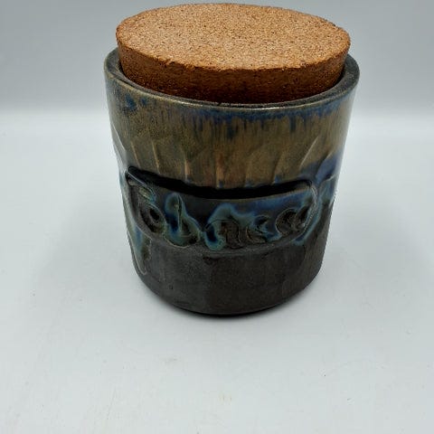 Størst er indgraveret “Tobakskrukke” og særdeles smuk i såvel løbende glasur som keramikken og med originalt kork-låg og måler H: 12 x Ø: 11 cm til 299,- er SOLGT
