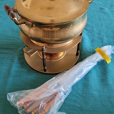 Stentøj, Chokoladesmelter, Fondue, Gourmet Batterie de Cusine, Skål og stativ der kan bruges samlet til fondue eller chokoladesmelter. Har en anden skål til stearinlys end original men i samme materiale. (ikke på billedet)