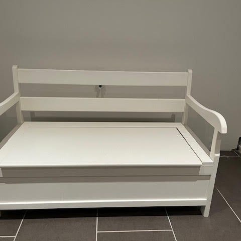 Bænk, Børnebænk hvid, Flot kvalitets børnebænk - hvid - m. skuffe. I rigtig god stand, meget velholdt med den rigtige patina