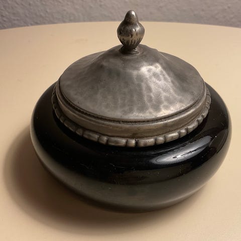 Gammel kinesisk bonbonniere / skål med låg i messing og lak