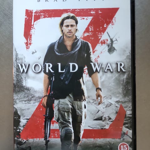 World War Z, DVD, gyser, World War Z … Zombie film på dvd med dansk tekst … 25,-