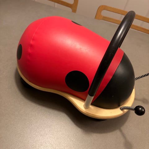 Skubber , Wheels, gåvogn, Lille mariehøne skubber fra Weely, brugt med meget få brugsspor( nærmest ingen) på selve mariehønen, men tydelige spor foran ved kanten under følehornene, hvor der er kørt ind i noget, derfor den lave pris på 90,-