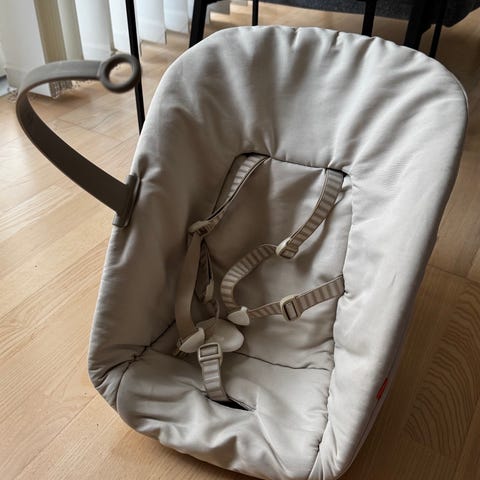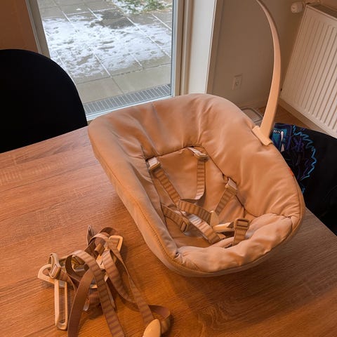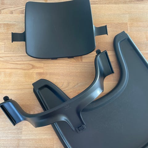 Stokke babyindsats og tray bord i hvid. Pæn stand. Sælges kun samlet. Prisen er fast.