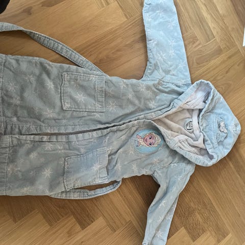 Stribet i forskellige blå nuancer, med lommer og bindebånd.