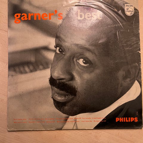 Rigtig gammel 10" vinyl på Columbia-label med den amerikanske jazz pianist Erroll Garner, der spiller sammen med John Simmons på kontrabas og "Shadow" Wilson på trommer. Den afspilles på 33rpm. Vinylen har en del overfladestreger, småmærker og enkelte hårfine ridser. Den afspiller med knitren, der på ingen måde overdøver musikken. Der høres også enkelte kliklyde. Absolut hæderlig afspilning for så gammel en plade. Coveret har slid på kanter og hjørner og lamineringen er begyndt at gå løs på bagsiden. Overordnet set stadig fin stand.