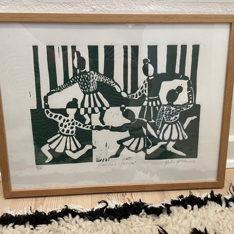 Linoliumstryk, Krista Tolstrup, motiv: Croissant, Super fint tryk købt i Birk Interiør, Aarhus