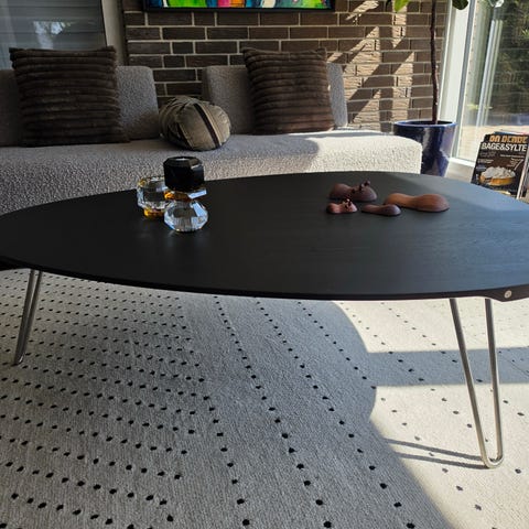 - Design: Designet med en smuk, rund form, der giver et let og luftigt udtryk. Et elegant og stilrent sofabord med flotte designmæssige former.