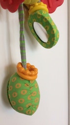 Babylegetøj , Tinylove, aktivitetslegetøj, Sød og sjov banan, der kan skrælles, ben og arme kan hives i og op og ned. Spejle i bunden af fødderne. Kan hænges op over seng, barnevogn eller tæppe. Farver, lyde og forskellige materialer, der stimulere sanserne hos baby. Samt sød, blød hæklet kat.