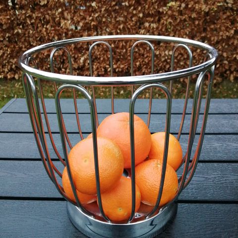 Citrus frugtkurv , Alessi, Ø22 cm, Klassisk frugtkurv/skål fra Alessi, der skaber et tidløst udtryk i hjemmet. Kan fyldes med forskellige frugter eller blot stilles på spisebordet eller andre steder i stuen som et dekorativt indslag. Kurven er produceret i stål.