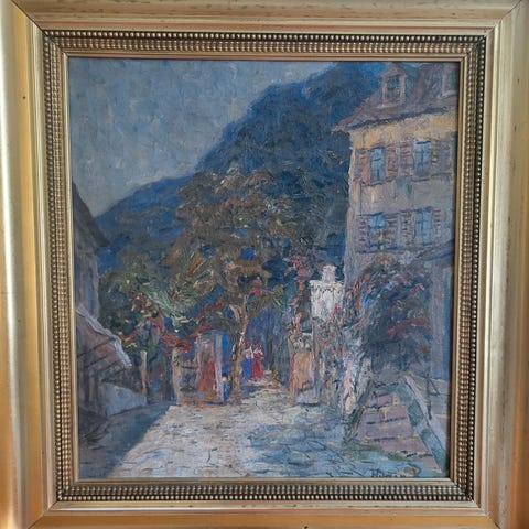 Oliemaleri, A. Reinert, motiv: Andet, stil: Andet, b: 110 cm h: 89 cm, Flot maleri af A. Reinert leveres i guldramme m udskæringer