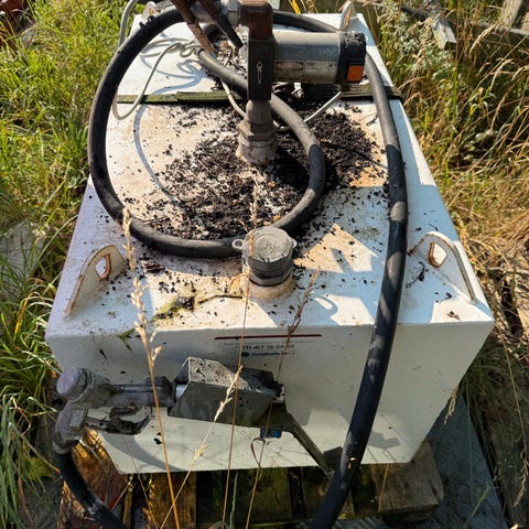 Dieseltank, Dieseltank med pumpe, tæller, tankmåler, pistol. Tanken er tæt og Tom. 220v tilslutning til pumpe. Pumpe kan høres i gang. Kun kontant betaling. Henv. 40 86 03 10