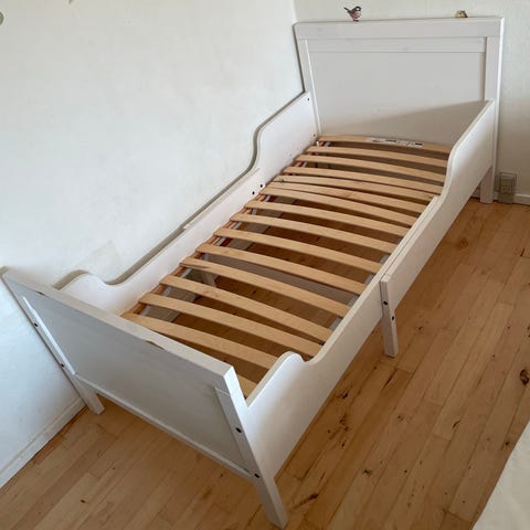 Juniorseng, Seng fra Ikea, Dejlig seng fra Ikea, Slakt. Skummadras (nypris 1300) samt 2 topmadrasser i foam ( nypris 600 stk) hvis man ønsker at ligge særlig blødt ??