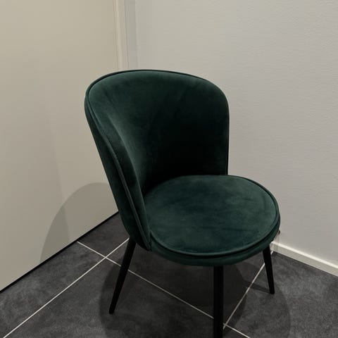 Spisebordsstol, Ruskin, Jysk, Sælger 8 stk Risskov spisebord stole i grøn til 450 kr pr stk eller alle 8 stk for 3200 kr.