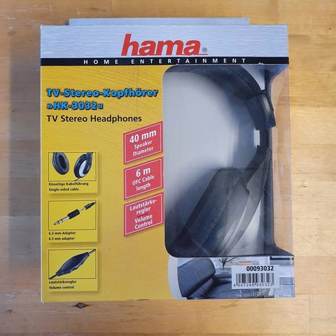 headset hovedtelefoner, Andet mærke, Hama, Perfekt, Hama stereo hovedtelefoner med ekstra langt kabel, volumekontrol og 6,3mm adapter.