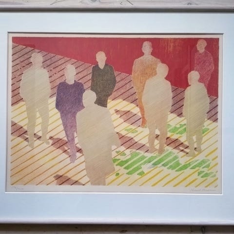 Litografi, Knud Hansen, motiv: frokostbord