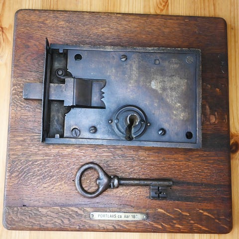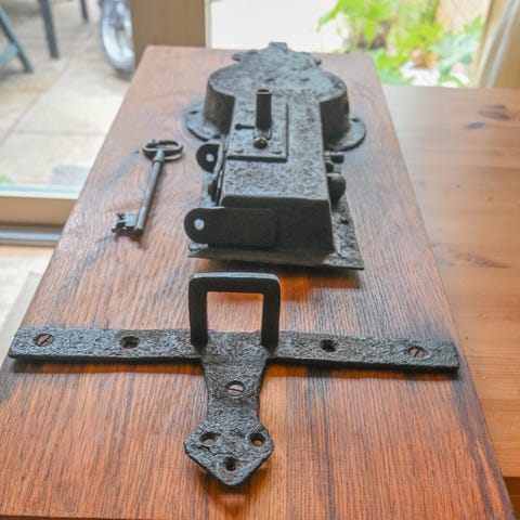 Antik Håndsmedet dørlås , Jern, 250 år gl.