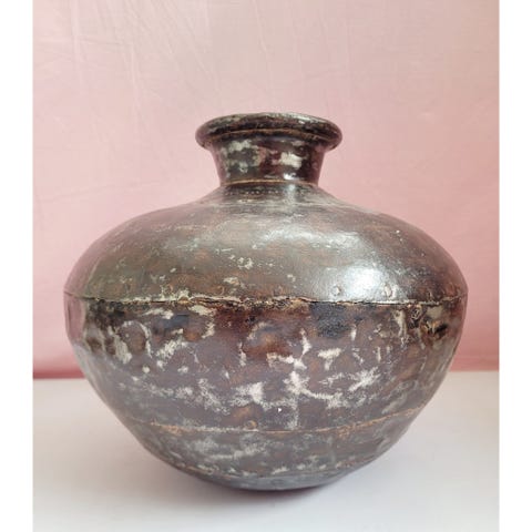 Beholder til badevand, Metal, 80 år gl., Fin beholder til badevand, som man brugte i gamle dage. Beholderen er 27 cm høj, 32 cm i længden og 20 cm i dybden. Den kan hænge op så man kan komme vand i den og åbne for ventilen. En gammel børste til slangen er der også. Beholderne har stået som pynt på vores badeværelse