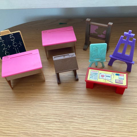 Dukkehus-møbler, Kontorbord med rekvisitter limet på
