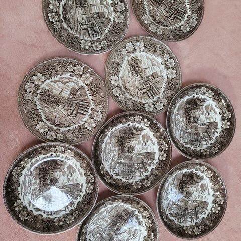 Porcelæn, Frokosttallerken, desserttallerken, underkop, Royal Tudor Ware Staffordshire - Georgia, Samlet pris eller